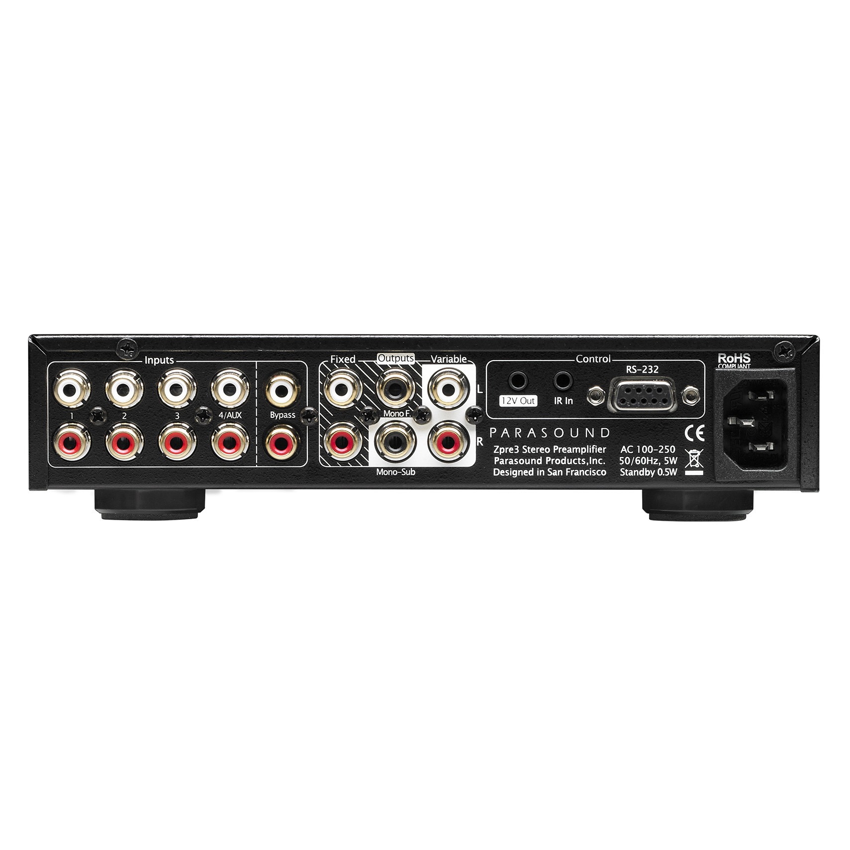 Parasound zpre v.3 - двухканальный предварительный усилитель, четыре входных разъема для аудио- и видеосигналов с управлением посредством порта двунаправленного действия RS-232.