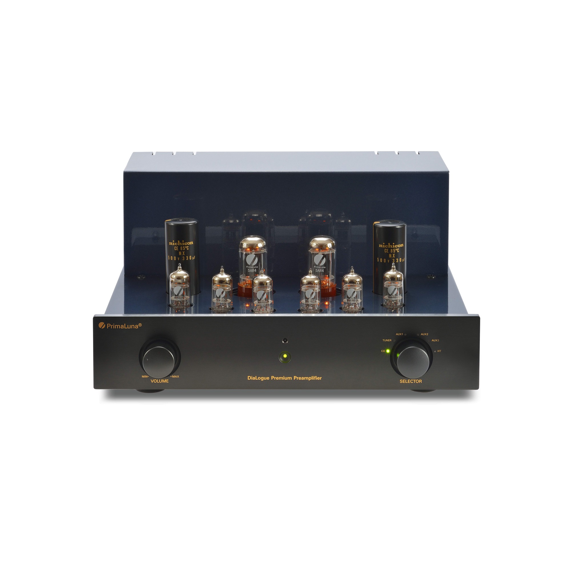 Радикальным отличием PrimaLuna DiaLogue Premium Pre является наличие 6-ти двойных триодов 12AU7 (по 3 на канал вместо двух, как у других моделей PrimaLuna), что способствует улучшению пропускной способности и звукового разрешения. Благодаря этому выходной импеданс понизился до 256 Ом, а уровень искажений в первом каскаде упал в пять раз (при небольшой громкости). За двойными триодами установлена пара выпрямительных кенотронов 5AR4 с «эскортом» из двух конденсаторов Nichicon. Все лампы защищены съемным кожухом с термостойкими стеклами.