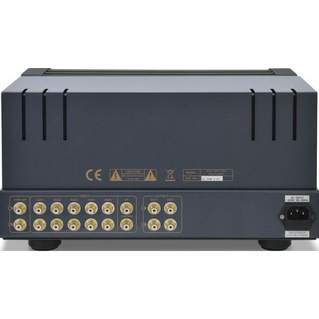 В схеме предусилителя используются только отборные компоненты высокого качества, такие как музыкальные и особо линейные японские резисторы TAKMAN с малым уровнем шумов, заказные тороидальные силовые трансформаторы в массивных корпусах, керамические ламповые панельки, схема лампового выпрямителя на 5AR4, регулятор уровня громкости от ALPS; конденсаторы от Nichicon и DuRoch, позолоченные входные RCA разъемы на панели.