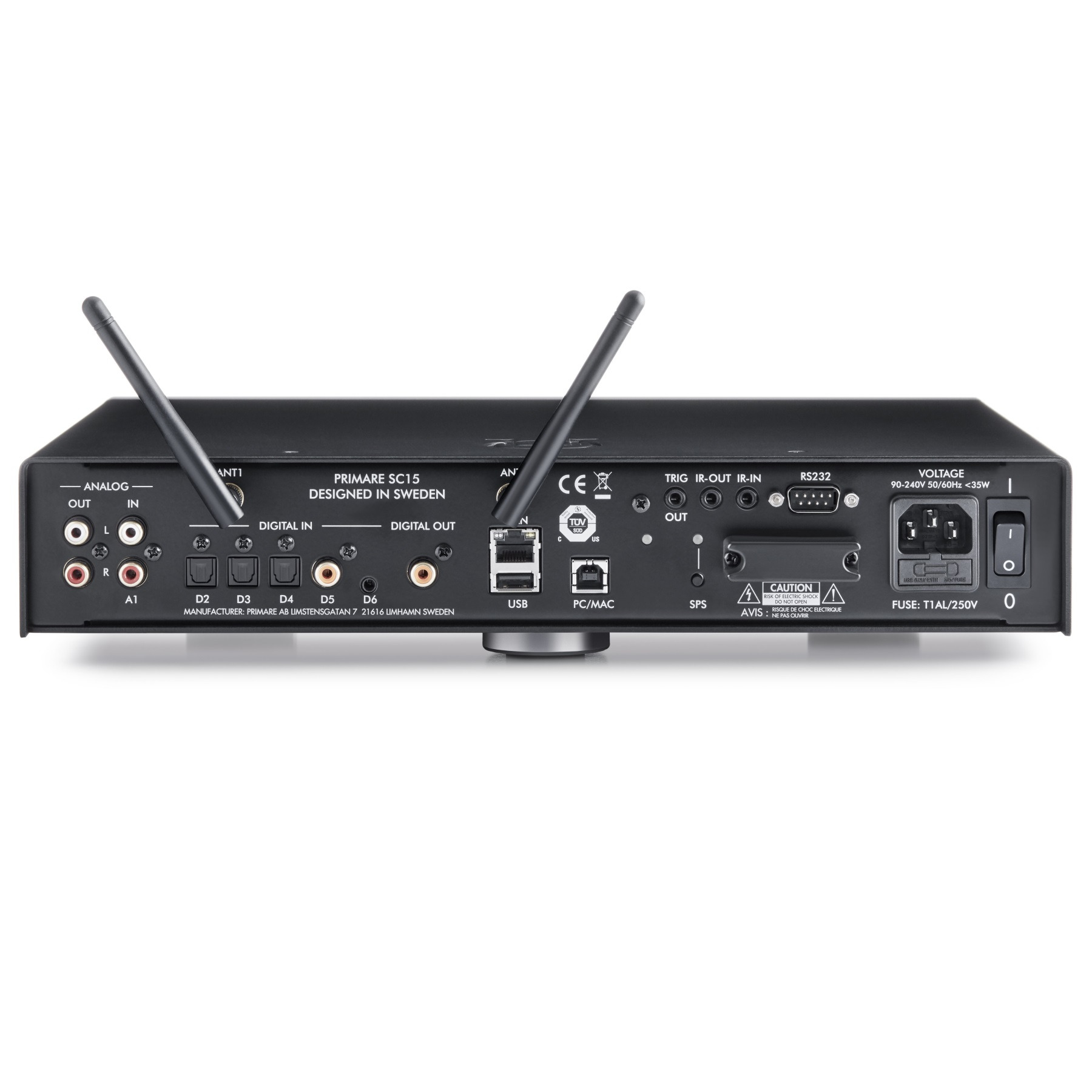 Полнофункциональный предварительный усилитель со встроенным сетевым проигрывателем PRIMARE SC15 разработан с поддержкой технологии WiSA, которая позволяет производить беспроводное подключение колонок. Представленный стример оснащен 24-битным ЦАП АКМ АК4490 с частотой сэмплирования 192 кГц (до 384 кГц PCM) и поддержкой DSD64/128.