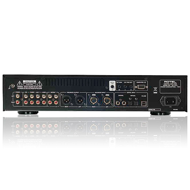 В числе аналоговых входов - балансные разъемы XLR, идеально подходящие для подключения плеера RCD-1572 через его выходы XLR, а также четыре пары обычных RCA входов. Завершает список вход фонокорректора для головок звукоснимателей типа ММ. В числе выходов - балансные на XLR и небалансные на RCA вместе с моно выходом на сабвуфер. Два 12-вольтовых триггерных выхода предназначены для контроля включения/выключения усилителей и/или других компонентов. Для заказных инсталляций функции управления включают в себя RS232 со стандартным разъемом DB9, а также Ethernet-порт для IP-контроля и обновления программного обеспечения по сети. Короче говоря, RC-1572 обладает огромной ценностью и может стать идеальным апгрейдом для владельцев старых, чисто аналоговых предусилителей.