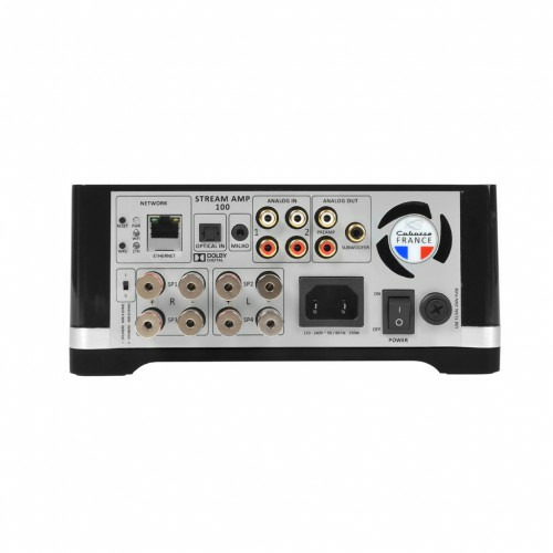 Cabasse Stream AMP Glossy Black - сетевой усилитель с беспроводной связью, может обеспечить вашим колонкам возможность беспроводного, а также и проводного приема и воспроизведения потоковой музыки высокого разрешения. Все новейшие функции стриминга оказываются в распоряжении владельца, благодаря широкому выбору входов, в числе которых: Bluetooth (Audio A2DP, SBC, APTX декодер, AVRCP), WIFI / RJ45, DLNA 1.5, USB. А благодаря высококачественному ЦАП Wolfson 24/96, Stream AMP100 выдает на АС усиленный до 2 x 50 Вт (или 4 x 25 Вт) сигнал на одну или две пары АС). Полную мощность и полный диапазон он обеспечивает при малых искажениях.