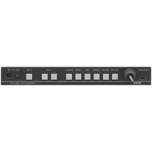 908 - усилитель мощности аудио стерео сигналов с дистанционным управлением. Выходные контакты выходов на громкоговорители (8 Ом) нельзя соединять с землёй.