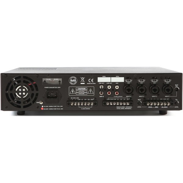 Разъемы | Mic / Line - 4x XLR / JACK 6,3 мм AUX - 1x RCA L / R MAIN IN - 1x RCA Пред - 1x RCA Другие разъёмы - винтовые клеммы |