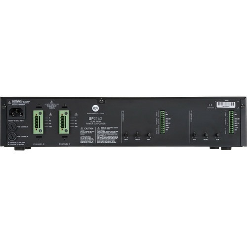 UP 2162 Усилитель мощности от RCF имеет два отделенных и независимые усилителя 160W. Каждая секция усилителя имеет два аудиовхода, один из которых с функцией приоритета через замыкающий контакт. Оба аудиовхода находятся на линейном уровне для предварительно усиленных сигналов или музыкальных источников, таких как проигрыватели компакт-дисков и тюнеры. Выход усилителя доступен либо для динамиков с низким импедансом (минимум 4 Ом), либо для динамиков с трансформаторами 100-70 В. Этот усилитель класса D имеет импульсный источник питания. Он идеально подходит для использования в ресторанах, магазинах, супермаркетах, отелях, офисах, универмагах, промышленных системах и аналогичных приложениях.