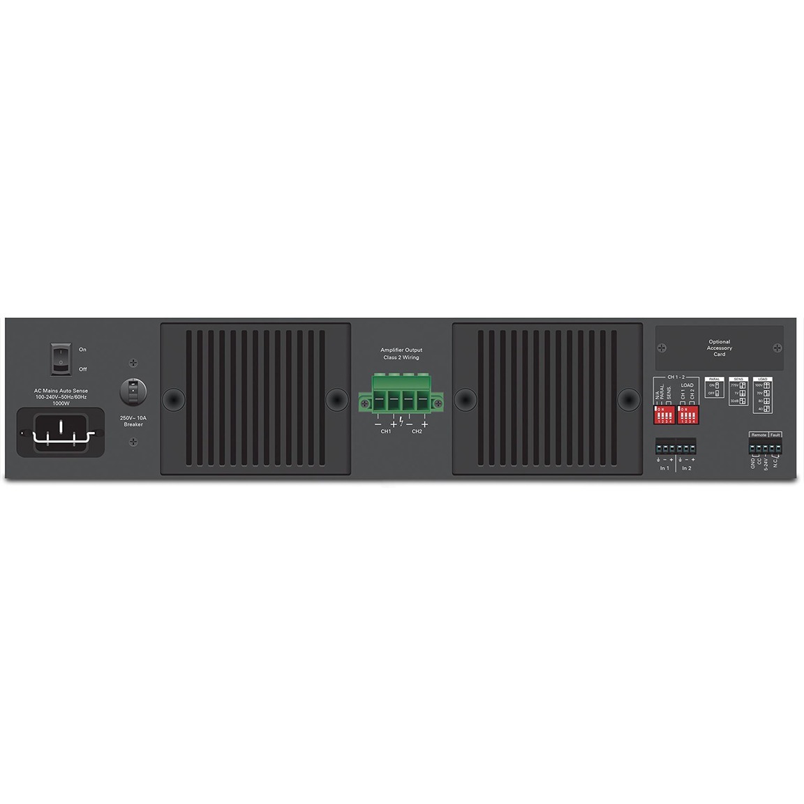HPA1302 – двухканальный усилитель мощности с балансными входами. 2х650 Вт – 70/100 В, 2х650 Вт – 8 Ом, 2х650 Вт – 4 Ом. Принудительное охлаждение, защита от перегрева, короткого замыкания и смещения уровня постоянной составляющей, ограничитель уровня сигнала. Усилитель выдает оповещение о неполадках (для использования с логическими входами аудиопроцессора BlueBridge). Удаленное включение, опциональная карта Dante. Высота 2U.