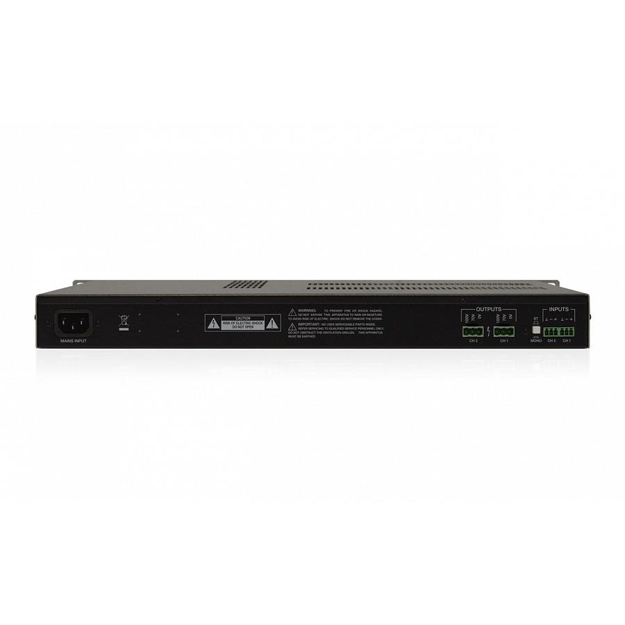 - два аналоговых аудио входа и выходы 2*150 Вт (70/100В линия)