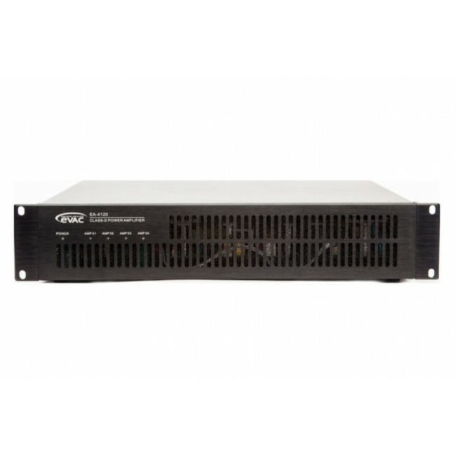 Блок EVAC EA-4240 применяется при построении автоматических систем речевого оповещения, аварийной трансляции и фонового музыкального вещания EVAC и используется для 4-канального усиления входных балансных сигналов от внешних аудиоисточников и передачи усиленного сигнала через высоковольтные выходы 100 В на подключаемые акустические системы. Мощность нагрузки на каждый канал не должна превышать 240 Ватт. В усилителе реализована функция автоматического охлаждения, срабатывающая при превышении температуры +55 °С, а также схема защиты устройства от бросков питающего напряжения, перегрева блока и перегрузки. Важной особенностью этой модели является возможность применения в качестве источника питания как сеть переменного тока 220 В, так и постоянного 24 В. При отсутствии текущих трансляций усилитель автоматически переключается в "Спящий режим" с целью снижения энергопотребления. Усилитель монтируется в стойку стандарта 19 дюймов.