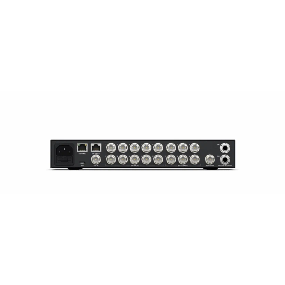 | Аудио | Звуковой блок Fairlight на 28 каналов с эквализацией и динамическими эффектами (расширение, подавление, ограничение, сжатие). Два разъёма балансного звука 1/4 дюйма, один 5-контактный XLR-разъём для двусторонней связи. Ввод и вывод звука через SDI — 16 каналов вложенного звука на всех SDI-входах и выходах |