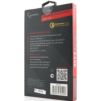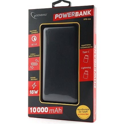 | Комплектация | Внешний аккумулятор, Micro USB кабель, Адаптер micro USB - USB Type-C, Адаптер micro USB – Lightning, Руководство пользователя, Листовка с промокодом |