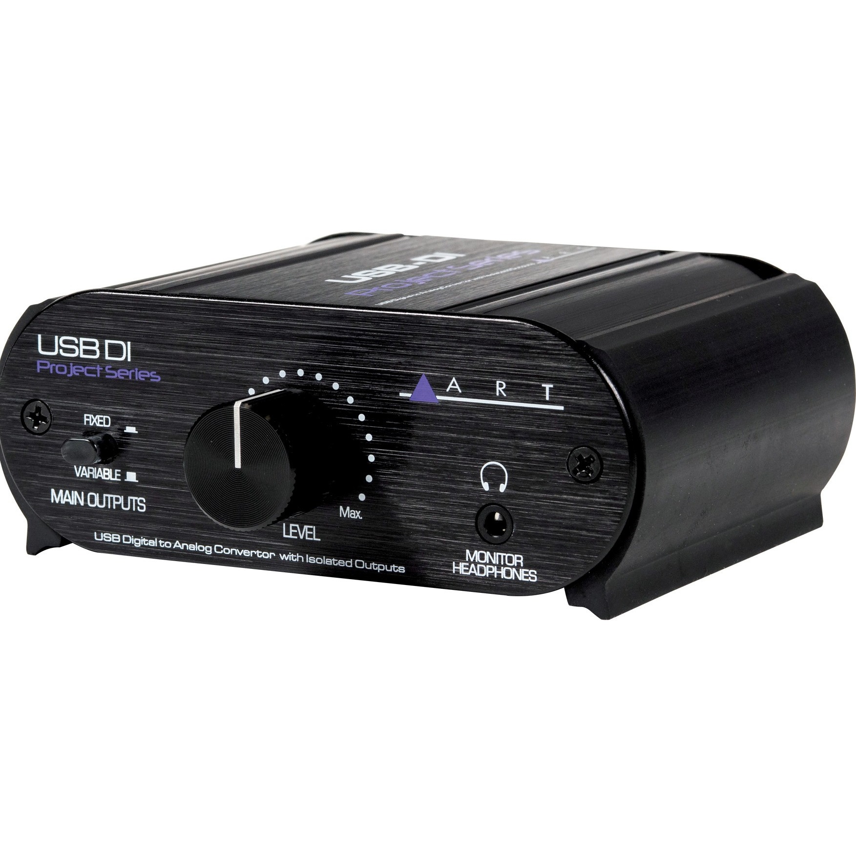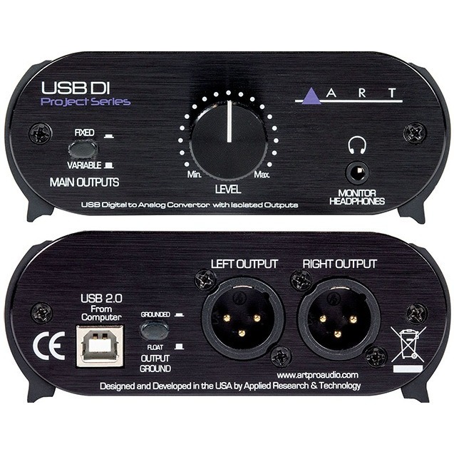 Переключатель Main Outputs на передней панели удерживает изолированные выходы на фиксированном уровне, одновременно контролируя уровень выхода на наушники. Выходы линейного уровня XLR доступны для подключения ко всем видам систем. Основные выходы всегда изолированы, но позволяют пользователю управлять опорным заземлением для снижения шума. Прибор питается от USB, потребляя менее 200 мА и устраняя необходимость во внешнем источнике питания. USBDI идеально подходит для подключения компьютеров к любой аудиосистеме.