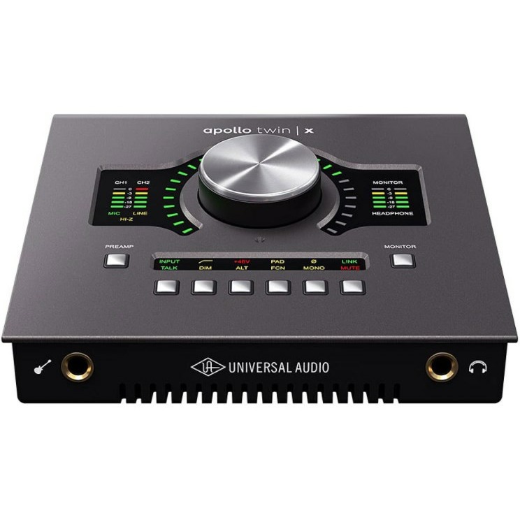 Universal Audio Apollo Twin X Quad Heritage Edition - специальное издание 10 х 6 Thunderbolt 3 аудиоинтерфейса с DSP обработкой UAD для Mac и Windows. Heritage Edition получило дополнительный набор из 5 премиальных плагинов UAD стоимостью более 1300 долларов, включая полный набор компрессоров UA Teletronix и 1176, все эквалайзеры Pultec, микрофонные предусилители UA 610 Unison и Pure Plate Reverb. Эти плагины являются дополнением к прилагаемому набору Apollo Solo Realtime Analog Classics. Аудиоинтерфейс имеет элитные чипы конвертеров ЦАП/АЦП, два микрофонных предусилителя с поддержкой моделирования Unison и DSP обработку UAD с четырьмя процессорами Sharc. Apollo Twin X оснащен двумя микрофонными предусилителями с поддержкой Unison, что позволяет вам использовать точные эмуляции микрофонных предусилителей от Neve, Helios, API, Manley, UA и многих других. Технология Unison точно моделирует звучание микрофонных предусилителей, включая их входное сопротивление, поведение схемотехники на уровне компонентов оригинального оборудования и особенности звучания. Технология моделирования Unison также используется на инструментальном входе Hi-Z на передней панели Apollo Twin X, обеспечивая полное соответствие сопротивлению и согласование усиления для моделей гитарных и басовых усилителей Fender, Marshall, Ampeg и многих других. Элитные конвертеры имеют динамический диапазон в 127 дБ и -117 дБ THD + N, что обеспечивает Apollo Twin X прозрачным и органичным звучанием, которое легко соперничает со специализированными высококачественными конвертерами. Благодаря мощной встроенной обработке UAD-2, Apollo Twin X позволяет делать записи и микшировать при помощи плагинов UAD с почти нулевой задержкой. Среди обширной коллекции плагинов имеются аутентичные эмуляции общепризнанных бестселлеров от Neve, Studer, Helios, API, Lexicon, Manley, Fender, Capitol Studios и многих других. В дополнение к двум микрофонным предусилителям с моделированием Unison, Apollo Twin X предлагает выход для наушников и инструментальный вход Hi-Z. С двумя линейными выходами, оптическим входом и выходом ADAT / SPDIF, расширенной мониторной секцией и встроенным микрофоном Talkback, Apollo Twin X может стать мощным центром профессиональной студии.