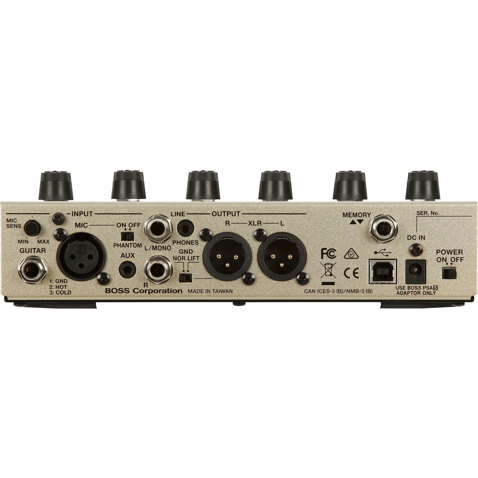 Отдельный гитарный канал VE-8 позволяет вашему акустическому инструменту зазвучать ничуть не хуже собственного вокала. Эффект акустического резонанса волшебным образом преобразит звук гитары, устраняя "стерильную" окраску, характерную для большинства пьезодатчиков, используемых в электроакустических инструмента. Эффекты реверберации и хоруса также находятся под рукой — а также безупречно звучащие эффекты BOSS, такие как Octave, Mod Delay и многие другие. Кроме того, в прибор встроен гитарный тюнер — необходимая вещь для живых выступлений. Наконец, инвертор фазы и режекторный фильтр позволят быстро устранить эффект акустической обратной связи.