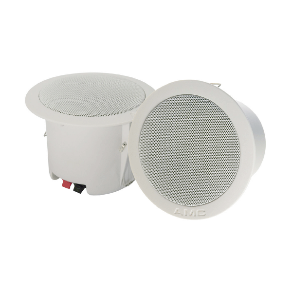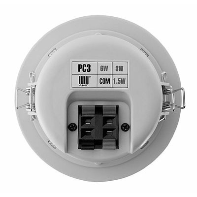 AMC PC 3 - потолочная акустическая система AMC PC 5TX, 5" коаксиал, SPL 98дБ, 90Гц-20кГц, 10-5-2,5-1,25 Вт/100 В/8 Ом, 190/80мм, металлическая сетка, белая. Двухполосный коаксиальный потолочный громкоговоритель для воспроизведения музыкальных программ с высоким качеством звучания. Превосходный звук позволяет использовать данную серию там, где требуется использовать и фоновое озвучивание и систему группового оповещения. Данная акустика соединениями для быстрого монтажа в фальш-потолок. Широкая направленность этих колонок и классический дизайн позволяют использовать эту серию где угодно, будь то ресторан, бар, магазин или вокзал.