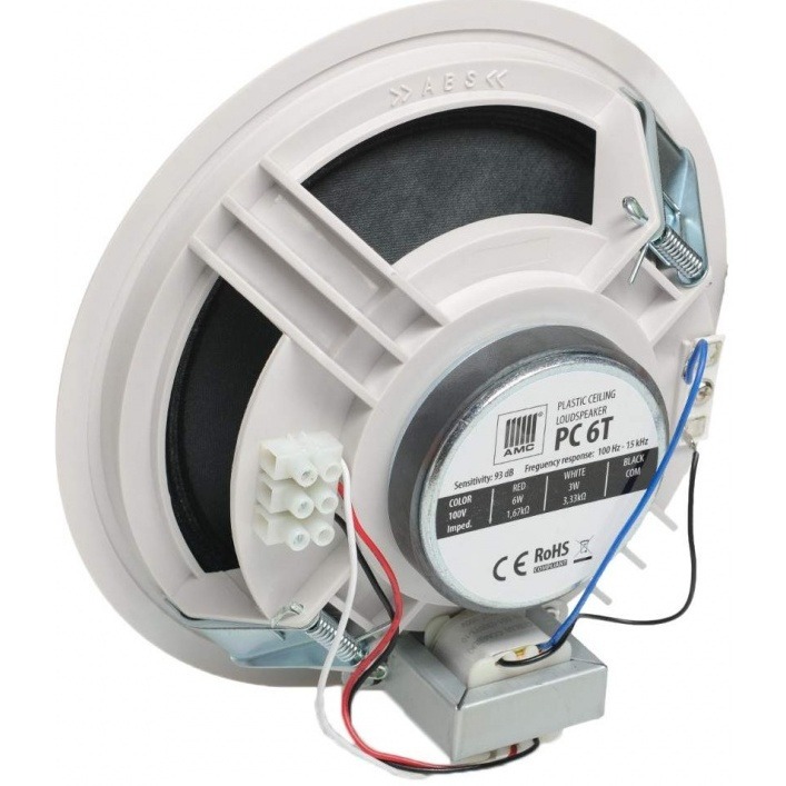 AMC PC 6T - это инсталляционный громкоговоритель со встроенным 6-дюймовым (152 мм) широкополосным драйвером, который разрабатывался для применения в системах голосового оповещения и фонового озвучивания. Вместе с данной моделью вы получаете аккуратное воспроизведение среднечастотного диапазона. В конструкции используется интегрированный трансформатор 100 В с переключателем режимов 6 Вт/ Вт. Специальные винтовые зажимы с надежной фиксацией позволяют легко и быстро подключать систему. Громкоговорители модельного ряда PC имеют сравнительно высокий уровень звукового давления (SPL) и широкую область покрытия, что идеально подходит для таких заведений, как рестораны, кафе, офисы, магазины и другие. Сверхтонкий дизайн систем делает их оптимальным решением для установки в подвесных потолках.
