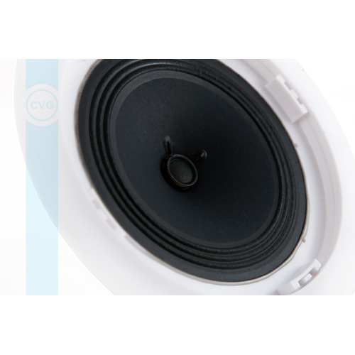 CVGaudio CPA5T – широкополосный, встраиваемый в потолок экономичный громкоговоритель для 100V систем Public Address. Это самая бюджетная модель в нашем каталоге. CVGaudio CPA5T рекомендуется для воспроизведения информационных голосовых сообщений, аварийно-пожарного оповещения и трансляции фоновой музыки в торговых и общественных помещениях. CVGaudio CPA5T хорошо зарекомендовал себя в крупных супермаркетах и общих зонах торговых комплексов, где требуется ненавязчивое воспроизведение фоновой музыки с небольшим уровнем громкости и в тоже время разборчивая и хорошо читаемая трансляция голосовых сообщений. Широкополосный громкоговоритель CVGaudio CPA5T предназначен для работы в составе трансляционных 100V линий и имеет установленный с обратной стороны корпуса качественный согласующий трансформатор с отводами двух различных мощностей - 3 и 6W. Спикерный кабель подключается к акустической системе с помощью кабельного терминала с надежным винтовым зажимом (винт должен фиксироваться с помощью отвертки). Выбор используемой мощности осуществляется при подключении спикерного кабеля – Вы фиксируете кабель в зажиме, соответствующем необходимой Вам мощности. Всего в кабельном терминале три зажима – СОМ(-), 3W(+) и 6W(+). Соответственно подключение должно быть – СОМ и 3W или COM и 6W. Диффузор динамика изготовлен из целлюлозы высокой плотности, корпус из качественного ABS пластика стойкого к воздействию солнечного света и пыли, диффузор закрыт декоративной сеткой из алюминия. Модель выпускается только в белом цвете, но при необходимости возможна перекраска корпуса и лицевой декоративной сетки в любой необходимый цвет. В подвесной потолок громкоговоритель надежно крепится с помощью удобных подпружиненных самозажимных металлических пластин. Благодаря продуманному креплению громкоговоритель устанавливается и фиксируется в потолке за считанные минуты. Динамик имеет очень небольшой вес и поэтому его можно встроить фактически в любой тип подвесного потолка (гипсокартон, Armstrong и так далее). Аккуратный, с тонкой внешней пластиковой рамкой, неброский внешний вид акустических систем CVGaudio CPA5T позволяет незаметно вписать громкоговорители в интерьер помещения, не нарушив общего стиля, а качественная сборка и тщательно подобранные комплектующие обеспечат бесперебойную работу устройства в течение всего времени службы громкоговорителя. Бюджетные широкополосные акустические системы CVGaudio CPA5T обеспечат достаточное качество звучания фоновой музыки для общих и служебных помещений и отличное качество воспроизведения речевых сообщений, но для действительно высококачественного воспроизведения фоновой музыки в кафе, бутиках, ресторанах и других подобных помещениях, где к качеству звучанию музыки относятся с пристрастием - более правильно будет использовать двухполосные акустические системы – CVGaudio серии CR и CRX и так далее.