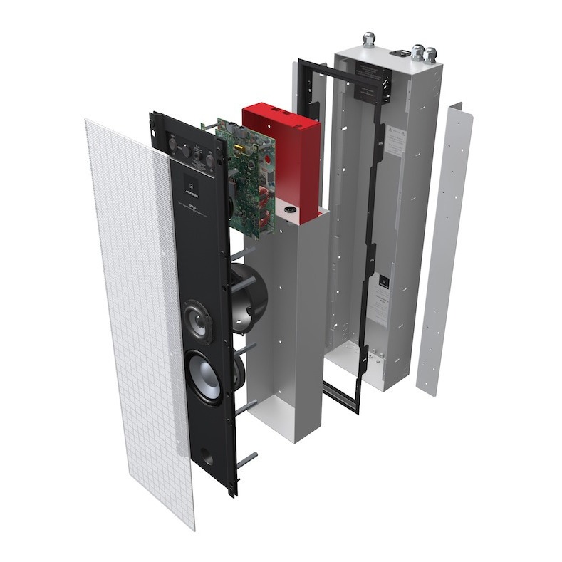 Блок DSP520 заключён в полностью интегрированную, узкую (всего 203 мм) цельную металлическую оболочку. Этот модуль крепится к раме, которая, в свою очередь, монтируется в монтажную несгораемую коробку. Заднюю коробку можно отрегулировать под различные материалы и глубину стены. Сетевой разъем IEC входит в комплект поставки и подключается к проводу, прикрепленному к корпусу. Окрашиваемая перфорированная стальная решетка крепится к прорезиненным магнитам в алюминиевом копусе на передней панели корпуса громкоговорителя. Все элементы конструкции предназначены для простой, гибкой и точной установки практически на любой тип стены. Meridian DSP520 может монтироваться вертикально или горизонтально в стенах.