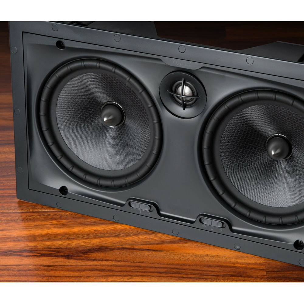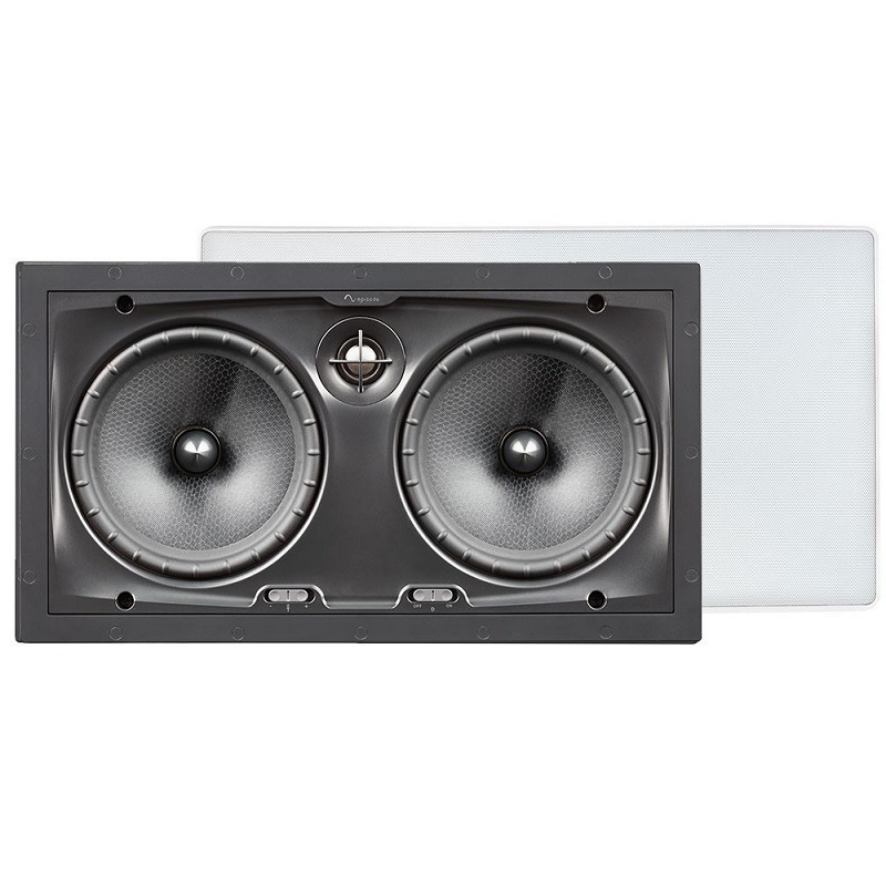 Встраиваемая в стену двухполосная акустическая система с двумя низкочастотнымы динамиками из полипропилена с сотовой структорой из материала Nomex диаметром 165 мм, с титановым высокочастотным динамиком диаметром 19 мм.