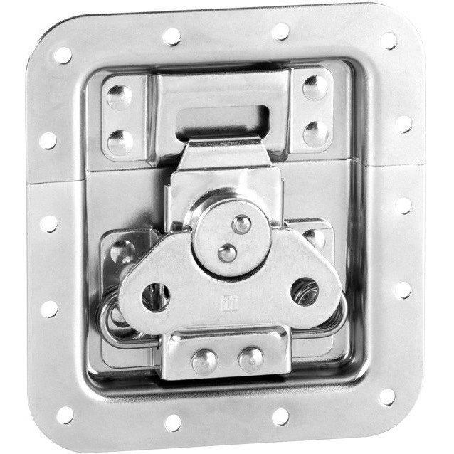 Adam Hall замок - бабочка для кофра и кейса врезной, средний, пружинный с выштамповкой под профиль. Мягкий в использовании и прочный в эксплуатации. Гладкая поверхность, четкие грани. Характерный щелчок при открытии замка. Фурнитура для кейсов выполнена из блестящей оцинкованной стали. Замки для кейсов предназначены для того, чтобы сделать кофр своими руками красивым и функциональным.