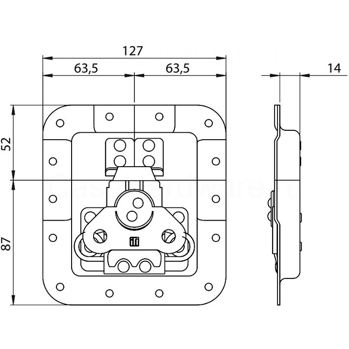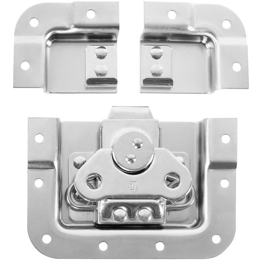 Adam Hall замок - бабочка для кофра и кейса врезной, средний, пружинный с выштамповкой под профиль. Мягкий в использовании и прочный в эксплуатации. Гладкая поверхность, четкие грани. Характерный щелчок при открытии замка. Фурнитура для кейсов выполнена из блестящей оцинкованной стали. Замки для кейсов предназначены для того, чтобы сделать кофр своими руками красивым и функциональным.