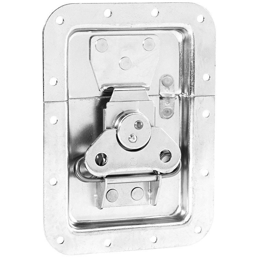 Adam Hall замок - бабочка для кофра и кейса врезной, средний, пружинный с выштамповкой под профиль. Мягкий в использовании и прочный в эксплуатации. Гладкая поверхность, четкие грани. Характерный щелчок при открытии замка. Фурнитура для кейсов выполнена из блестящей оцинкованной стали. Замки для кейсов предназначены для того, чтобы сделать кофр своими руками красивым и функциональным.