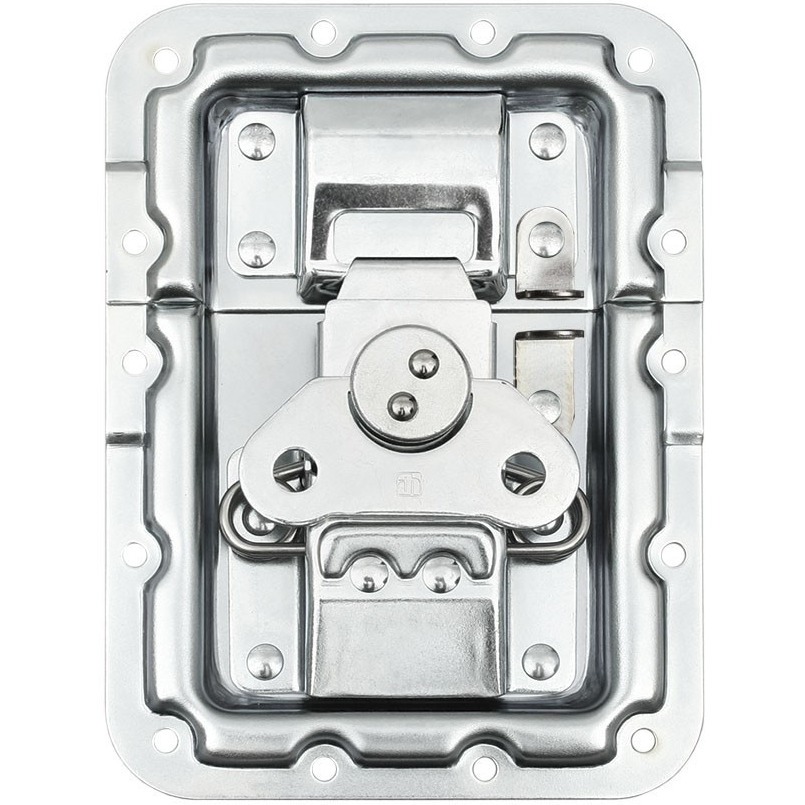 Adam Hall замок - бабочка для кофра и кейса врезной, средний, пружинный с выштамповкой под профиль. Мягкий в использовании и прочный в эксплуатации. Гладкая поверхность, четкие грани. Характерный щелчок при открытии замка. Фурнитура для кейсов выполнена из блестящей оцинкованной стали. Замки для кейсов предназначены для того, чтобы сделать кофр своими руками красивым и функциональным.