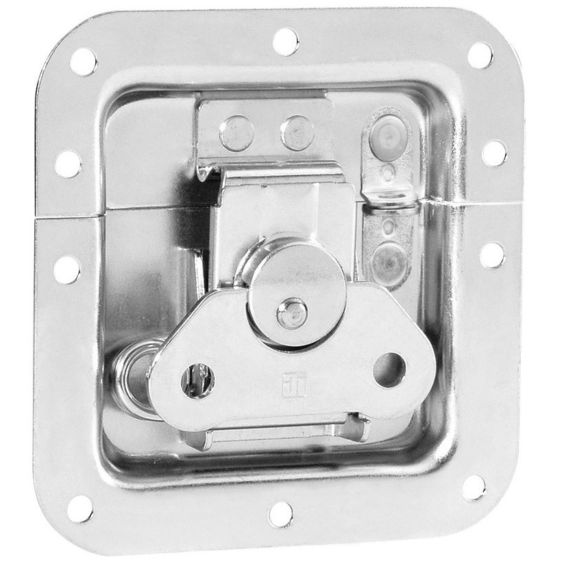 Adam Hall замок - бабочка для кофра и кейса врезной, средний, пружинный с выштамповкой под профиль. Мягкий в использовании и прочный в эксплуатации. Гладкая поверхность, четкие грани. Характерный щелчок при открытии замка. Фурнитура для кейсов выполнена из блестящей оцинкованной стали. Замки для кейсов предназначены для того, чтобы сделать кофр своими руками красивым и функциональным.
