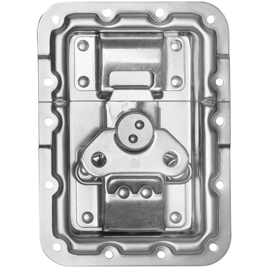 Adam Hall замок - бабочка для кофра и кейса врезной, средний, пружинный с выштамповкой под профиль. Мягкий в использовании и прочный в эксплуатации. Гладкая поверхность, четкие грани. Характерный щелчок при открытии замка. Фурнитура для кейсов выполнена из блестящей оцинкованной стали. Замки для кейсов предназначены для того, чтобы сделать кофр своими руками красивым и функциональным.