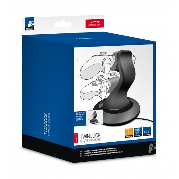 Twindock (SL-4511-BK) от компании Speedlink - станция для зарядки геймпадов DualShock 4. Устройство позволит вам зарядить одновременно два джойстика, что значительно сэкономит ваше время. Надежная, удобная система гнезда обеспечит безопасность расположения геймпадов – нужно только установить геймпад в правильном положении и он начинает заряжаться. Ножки зарядной станции прорезинены, а это значит, что они не двигаются, а стоят на месте.