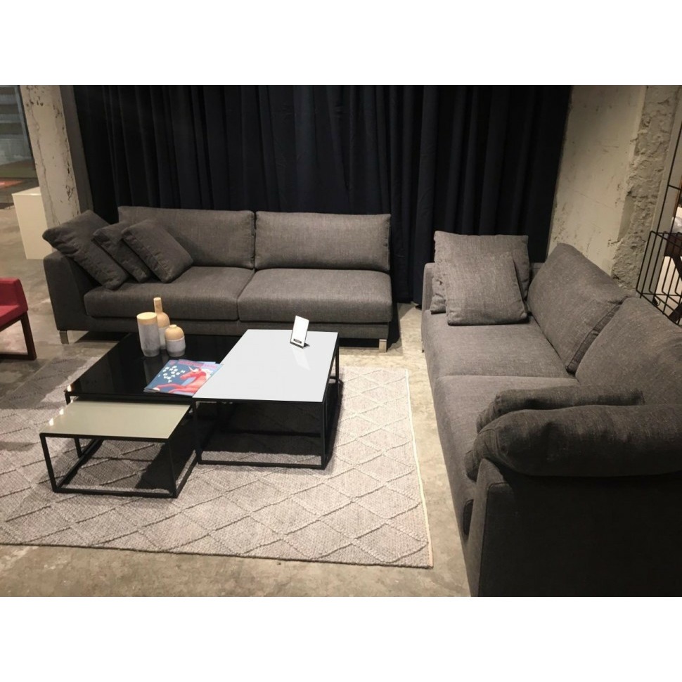 Красивый дизайнерский журнальный столик от известной фабрики мебели Sonorous. Столешница и фасад столика выполнены из закаленного стекла.
