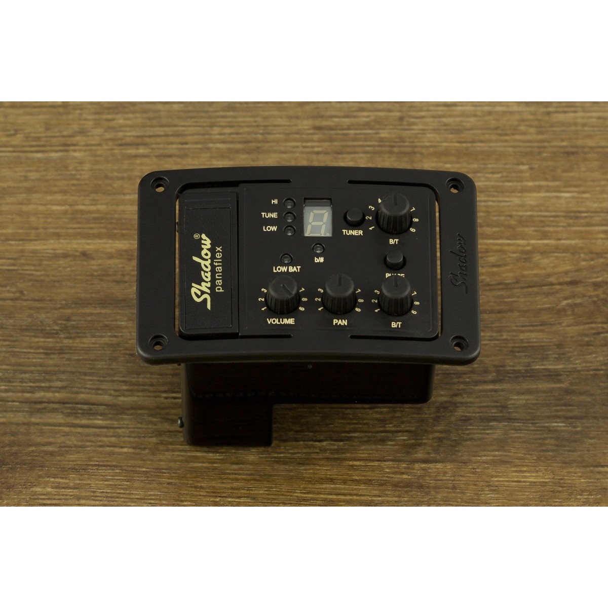 Звукосниматель и врезной предусилитель с панорамным звучанием для классических гитар. Звукосниматель PanaFlex со стерео выходом обеспечивает каждой из шести струн наличие собственного датчика. Система предусилитель/звукосниматель включает в себя технологию Nanoflex, что позволяет снимать не только вибрации струн, но и колебания корпуса инструмента. Полностью экранированная система включает активное усиление звукоснимателя, что полностью избавляет от гула и шумов. Регулятор панорамного звучания позволяет установить выход как моно или стерео. Предусилитель оснащен отдельными регуляторами звучания (bass/treble) для басовых и первых струн, а переключатель фазы помогает избегать возникновения обратной связи. Кроме того, система оснащена встроенным автоматическим тюнером.