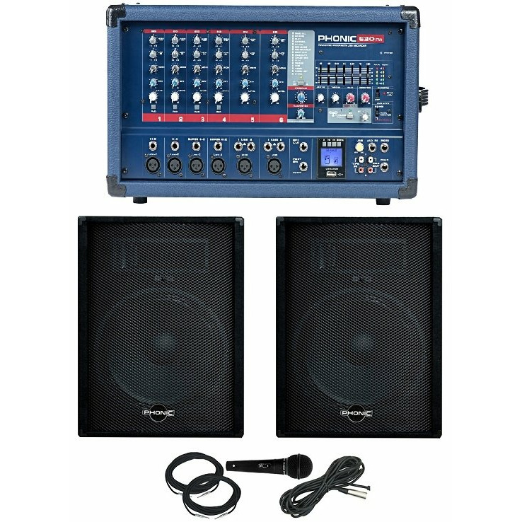 Phonic Powerpod Cruise 12 USB-W Plus - Звукоусилительный комплект из 2-х профессиональных акустических cистем/мониторов 2X340W, Активный 6-ти канальный микшерный пульт, XLR & Jack - 4 канала, XLR & 2 x Jack - 2 канала, DSP мульти-эффект процессор 16 программ 32/40-bit, 1 AUX, 7-и полосный графический master EQ, габариты 440x265x275 мм, вес 13,06кг, ВСТРОЕННЫЙ USB РЕКОРДЕР/ПРОИГРЫВАТЕЛЬ c меню на русском языке, Bluetooth для воспроизведения потокового аудио с мобильных устройств. Микрофон и акустические кабели.