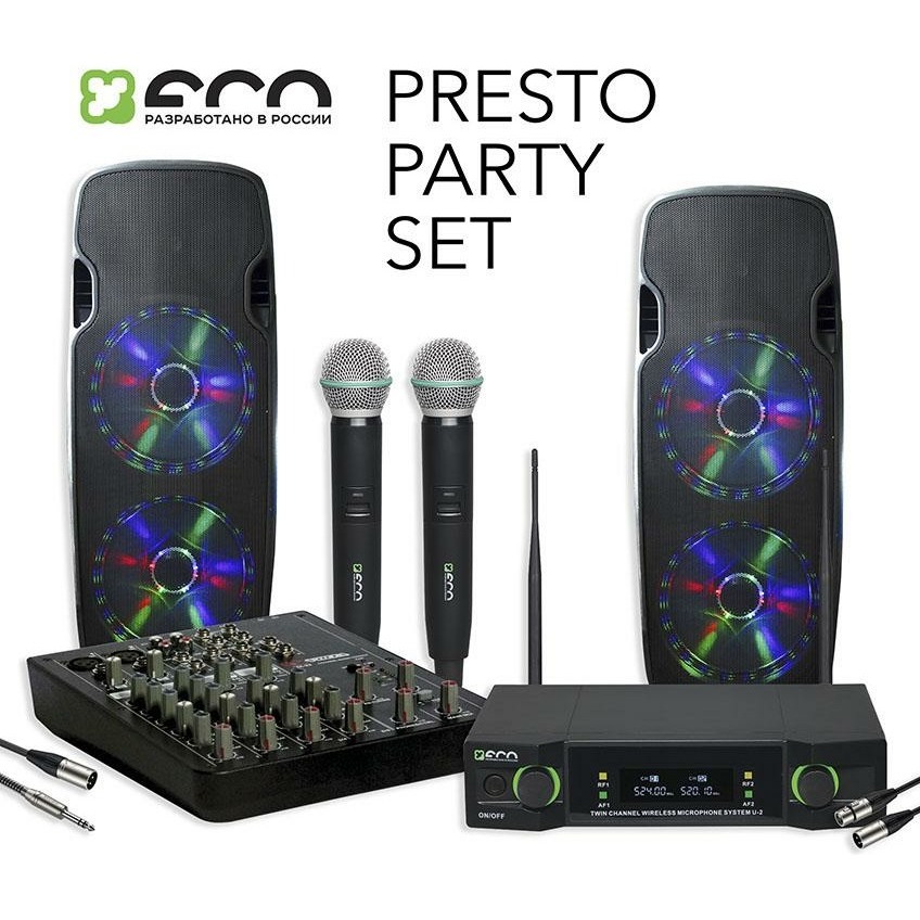 Звукоусилительный комплект PRESTO PARTY SET предназначен для использования на весёлых вечеринках. Не важно где они проходят – в школьном классе, студенческой аудитории, в кафе или на веранде летнего кафе – хорошее настроение вам обеспечено.